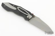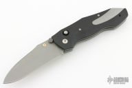 This Anubis from CRKT features a bead blasted blade with dual thumbstuds. The handle has black fiber scales with a stainless steel insert, stainless steel liners and tip down clip. Excellent condition.