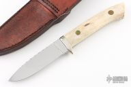 From a friend: "I got to know "Dub" years ago in Ft. Thomas, Arizona. He was brought out here by Brad Watts and John Huston of Scottsdale. Brad has a hunting residence that he built in Ft. Thomas and he told me that he was so impressed with Dub's knives that he wanted get to know him. Both John and Brad had purchased several of Dub's knives at the Kansas City Knife show. When I first met Dub, he gave me a knife and so I gave him some artifacts from my Indian relic collection. I liked him the first time that I met him. I really admired his knives that he made with his left hand. (he had lost his right hand in an industrial accident). He used a mechanism that he could hold things with that he activated on his right arm by moving his left shoulder. He wanted to come out and visit me and my family during deer season so he stayed with us for a week about a year after I met him. I own five of his knives. One knife he gave me, has aircraft grade aluminum handles. He wanted me to "test' it for him. I gutted and skinned out five deer with that knife before it needed sharpening. I still carry it on deer and elk hunts." Dub has since passed away.