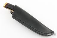 This Hunter by RW Wilson features a mirror finished blade, .107" blade stock and .891" blade depth, hidden tang construction. The handle has a brass guard and butt, stag grip with red and ironwood spacers. Comes with a black leather sheath. Excellent condition.  #47813