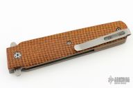 This Radical 194 Linerlock Flipper by Tom Ferry has an upswept tanto tumble finished blade with an acid etched finish. the handle has thunderstorm kevlar scales and backspacer with bead blasted titanium liners and tip up clip. Very smooth flipper opening that requires no wrist action. Rides on bearings, Nice blade seating and detent, with good lockup. Comes with a zipper case. Excellent condition.