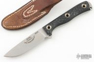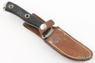 This Mean Street has a satin finished drop point blade with a full tang construction, .151" blade stock and .949" blade depth.  This handle features black G-10 scales. Comes with a brown leather sheath, Has some scratches, otherwise good condition.