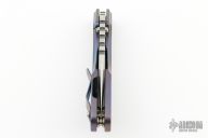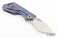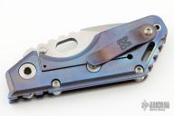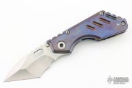 This Mick Strider custom Stub XL tanto features a two-tone blade with stonewashed flats and satin finished grinds and swedge. The handle is anodized and orange peel finished titanium frame with a pocket clip that has a matching finish and is positioned for tip up carry. Blade is centered when closed and locks up with no play. Excellent condition.