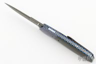 I enjoy making all kinds of knives. I make straight knives, tactical folders and high end folders, with my favorite being high end automatics. My favorite locking mechanism is the front release lock blade, but I also make a large number of frame lock folders. I flat grind all blades. I use a large number of different blade steels and many different damascus steel varieties by different makers.