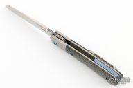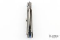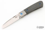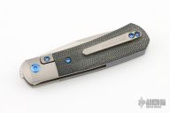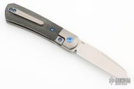 This Apache Front Flipper by Enrique Pena features a satin finished blade with a front flipper and notched thumbrest. The handle has titanium bolsters, black micarta scales with a titanium backspacer and matching tip up pocket clip. Includes a Pena X-Series padded box.  Excellent condition.