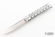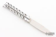 The Paradox X series is designed from the ground up to mimic a traditional balisong, or butterfly knife, in every respect but one--it can't be opened with one hand. The handles rotate 180 around the blade's unique split tang and uses strong opposing spring tension to lock the blade open or hold it firmly closed. Japanese AUS-8A stainless steel blade Aluminum handle, tip up stainless steel clip. Excellent Condition.