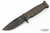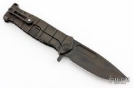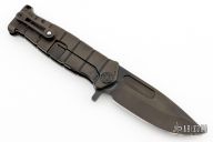 We believe we’ve come up with the best folding companion to the classic Marine Utility knife on the planet.  The knife is a perfect companion piece to the fixed “Fighter” and we call it the, “The Fighter Flipper.”.  This a big manly knife that’s as comfortable working, as it is cruising around town in your pocket.  There is so much going on with this knife its hard to take in: from the retro milling on the handles, drop-point blade, integral pommel to the bearing pressed into the one-of-a-kind pocket clip.  There truly is NOTHING like the Fighter Flipper™ in the knife world.  You will want to chop, stab and smash something with this beast in your hand so proceed with caution… Comes with original box and hard case.  Excellent Condition.
