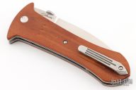 - Grooved wood handle scales over black steel liners.
