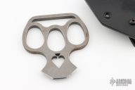 The Crown of Thorn is the ultimate novelty key-chain fob or CQB "space maker" when you get jammed up in close quarters. The design is pretty self-explanatory but suffice it to say, the fingers sit comfortably into the tool and the "Thorn" comes in a symmetrical spear-style. Comes with kydex sheath with TekLok, original box and CORA dated Nov 25, 2020. Has some patina. Excellent condition.