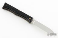 This Vintage Side Opening Auto by Florinox has a polished drop point blade. The handle is knurled plastic. Push the button to fire, safety below the button. Comes with a zipper case. Has some scuffs and scratches, good condition otherwise.