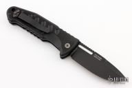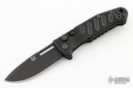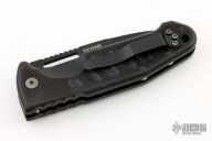 This FX-503 FA Automatic by Fox Cutlery features a black blade with fullers, and notched thumbrest. The handle has black G-10 scales and titanium posts, black stainless steel liners and tip up reversible clip, black hardware. Comes with original box. Excellent condition.
