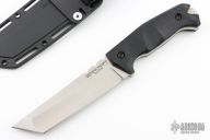 This Warcraft Tanto by Cold Steel features a satin finished tanto blade with notched thumbrest, .184" blade stock and 1.362" blade depth, full tang construction with black G-10 scales. Comes with a black Secure-Ex sheath and the original box. Excellent condition.