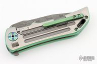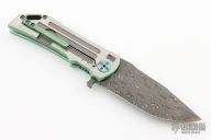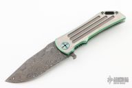 This Dominator V4 by Darrel Ralph features a Damascus blade with notched thumbrest and flipper. The handle has a satin finished and anodized titanium frame with a matching tip up pocket clip and backspacer.  Includes a padded zippered case.  Has a couple light scratches, otherwise excellent condition.