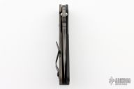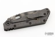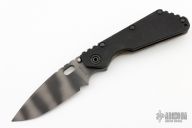 This SMF from Strider Knives features a tiger stripe blade and textured black G-10 and flamed titanium handle and matching tip up titanium clip. Notches on thumbrest, rear of handle, and lockup. Includes Hinderer "Lock Bar Stabilizer" for maximum reverse lock retention. Excellent condition.