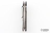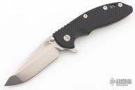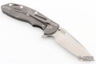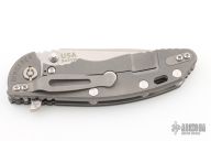 This XM-18 Flipper by Rick Hinderer Knives features a 3.5" stonewashed blade, notched thumbrest and flipper, dual thumbstuds. The handle has a black G-10 scale, and working finished titanium handle and hardware, filler tab, and titanium clip. Clip can be mounted for tip up or down carry. Nice lockup, seating, and detent. Comes with original box and extra hardware. New condition.