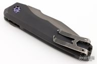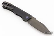 This Wraith Auto by Heretic Knives features a black clip point blade with false top edge and notched thumbrest. The handle has a carbon fiber bolster, integral black aluminum handle with black tip up stainless steel clip and hardware. Has scuffs and scratches, and has been resharpened. Great user condition.