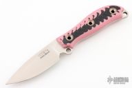 This Active Duty (AD) by the Busse Custom Shop features a satin finished drop point blade, .149" blade stock, 1.073" blade depth. Full tang construction with black/pink G-10 scales and a lanyard hole. Excellent condition.