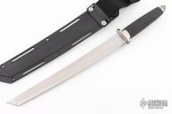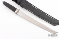This Magnum Tanto XII by Cold Steel features a satin finished blade. Guard and pommel are stainless, .189" blade stock and 1.184" blade depth, hidden tang construction. Handle is textured Kraton for a sure non-slip grip. Lanyard hole and glass breaker. Comes with Secure-Ex sheath with a nylon belt loop and original box. Excellent condition.