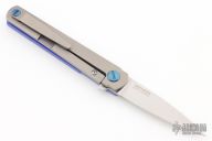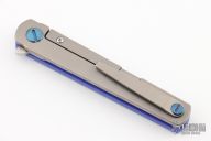 This MS3 Manhattan Special by Michael Zieba features a stonewashed AEB-L blade with flipper. The handle has a purple G-10 and blasted titanium frame with matching tip up clip and anodized titanium hardware, has stainless steel lockface insert. Rides on bearings, nice detent, lockup and blade seating. Excellent condition. Comes with original box.