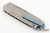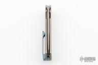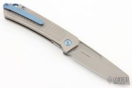 This .X-Mid OEM is a Richard Rogers Design and features a bead blasted blade. The handle is milled and bead blasted titanium with anodized titanium backspacer, hardware and tip up clip. Nice detent, lockup and blade seating. Comes with original packaging. New condition.