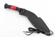 COLD STEEL Mini Gurkha Light Kukri - one of the much admired Carbon V steel generation of CS blades - Model #35GKS. This is the most sought after Kukri in the Cold Steel lineup. Powerful distribution/forward balance design. It is paired with the factory correct 'heavy duty' leather sheath. There were two different leather sheaths made for the GLK, This one is the really nice, thick, heavy duty one. Model Introduced: 1998 , Discontinued: between 2002-2003 , Blade: 10.5" , Overall: 14.75", Blade Thickness: 1/8" Weight: 13.8 oz , Steel: Carbon V