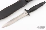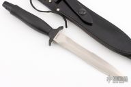 The Mark II is one of the best selling knives of all time. First introduced in 1966, this tactical knife is serialized for collectors. Satin finished double edged blade, .243" blade stock and .973" blade depth, hidden tang construction with a black aluminum handle. This knife is Serial #102595 . Made in 1981. Comes with black leather sheath. Has some light scuffs and scratches, has been resharpened. Great condition otherwise.