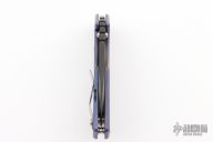 This 3/4 AR by Strider Knives features a black PVD coated S45VN blade with notched thumbrest and thumbhole. The handle has a tumbled and anodized titanium frame with a stonewashed titanium tip up clip. Nice detent, lockup and blade seating. Has a couple small scratches, otherwise excellent condition.