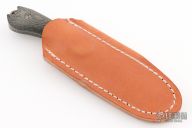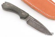 This Guardian3 by Bradford Knives features a black tumble finished drop point blade with swedge and notched thumb rest. 0.140" blade stock and 1.079" blade depth. The handle is comprised of contoured black canvas micarta scales over full tang construction. Exposed tang pommel with lanyard hole. Includes leather sheath. Excellent condition.