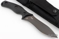 This 0100 fixed blade from Zero Tolerance is a Ken Onion design, features a black coated drop point recurve blade with fullers, .190" blade stock and 1.446" blade depth, full tang construction. The handle has milled black G10 scales with lanyard hole in pommel. Includes nylon sheath with kydex insert. Includes the original box and papers.  Excellent condition.   #2020