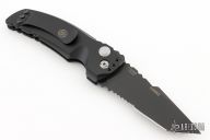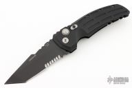 This EX-A01 by Hogue Knives is an Allen Elishewitz design, it features a black tanto partially serrated 154CM blade with notched thumbrest. The handle is black aluminum, tip up or down reversible black stainless steel clip. Has safety. Comes with Hogue box and papers. Excellent condition.