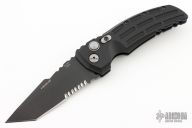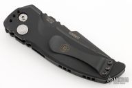 This EX-A01 by Hogue Knives is an Allen Elishewitz design, it features a black tanto partially serrated 154CM blade with notched thumbrest. The handle is black aluminum, tip up or down reversible black stainless steel clip. Has safety. Comes with Hogue box and papers. Excellent condition.