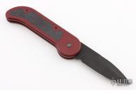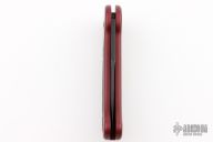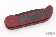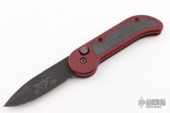This Side Opening Auto has a black ATS-34 stainless steel spear point blade. The handle has a red aluminum frame with non-slip inserts. Strong action and lockup. Very light 4-way blade play. Has a couple light scuffs, otherwise excellent condition.