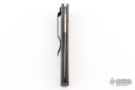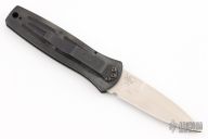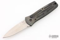 This 3550 Mel Pardue designed side opening auto has a stonewashed 154-CM stainless steel spear point blade with false top edge. Handle is matte black finished aluminum with milled contours, spine-thumb safety button, black stainless steel tip down clip, and lanyard hole. Has some scuffs on the frame, otherwise great condition.
