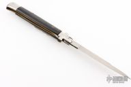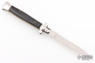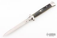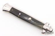 This large Swivel Bolster from Rostfrei features a satin finish spear point blade with false top edge. The handle has sterling bolsters and pommel with buffalo horn scales over brass liners and stainless steel backspacer. Excellent Condition.