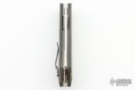 The Wharncliffe flat-ground blade constructed of M390 powder metallurgy steel. Not only does it look great, but this blade is made to perform. The fine edge is acutely sharp, and a small choil at the heel makes keeping the entire edge up to snuff. Some jimping near the thumb adds a little traction to the equation, and a full-length swedge runs all the way to the fine point, increasing the piercing qualifications of the knife while making it a more efficient slicer. Thank the one-hand operable liner lock for holding the blade open.