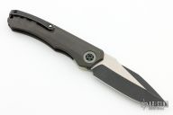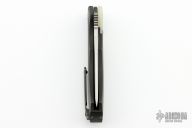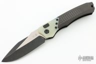 This Wraith Auto by Heretic Knives features a battleworn black blade with false top edge and notched thumbrest. The handle has a jade G-10 bolster, integral unidirectional carbon fiber handle with a tip up black stainless steel clip, lanyard hole at the butt. Comes with original box and draw string bag. S/N 01073. Excellent condition.