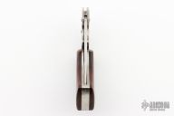This .22CAL Folding Knife by Kershaw features a satin finished blade with nail nick. The handle has a satin finished stainless steel frame with rosewood scales, stainless steel spring. Comes with a brown leather sheath. Has some scratches, otherwise great condition.