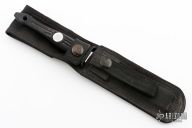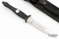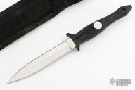 This Shadow I from Al Mar Knives features a doubled edge dagger style satin finished blade, .142" blade stock and .747" blade depth. The handle is comprised of zytel over hidden tang construction with lanyard hole in pommel. Comes with black nylon sheath. Excellent condition.