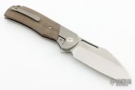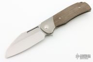 This Production Gungnir by Renegade Provisions Company features a satin finished blade with notched thumbrest and flipper. The handle has a titanium frame with green canvas micarta scales. Includes original box and papers. #260/300. Excellent condition.