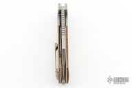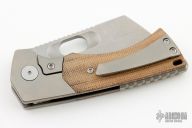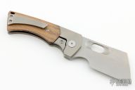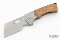 This Thick Boy WharnCleaver Linerlock Flipper by EMP EDC features a stonewash finished blade with notched thumbrest and flipper, and a thumbhole. The handle has a tumble finish milled frame, titanium backspacer and tip up clip, canvas micarta scales. Comes with original box. Rides on bearings, nice detent, lockup and blade seating. Excellent condition. Comes with original box.