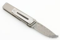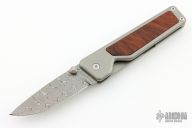 "The Chapter" by James Brand features a Damascus blade with a single thumbstud. The handle has a milled and bead blasted titanium frame with rosewood inlay, tip down clip. Comes with original box. Excellent condition.