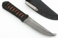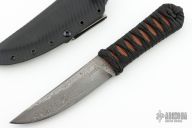 This Kwaiken from Ben Seward features a Damascus kwaiken style blade with forge finished flats, .174" Blade stock 1.199" Blade Depth. The handle has a black tsuka ito wrap over micarta slab. Includes black carbon fiber style kydex sheath. New from Maker!