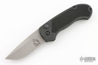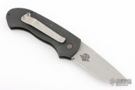 This Pocket Pro Side Opening Automatic from Woodard Knives features bead blast drop point blade and a swedge. The handle is comprised of a black aluminum frame with non slip inlays. Black coated stainless steel tip up clip. Has scuffs and scratches, good user condition.
