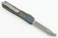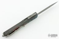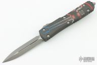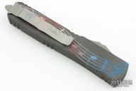 This Signature Series Ultratech by Microtech Knives has a D/E Apocalyptic finished double-edged blade with fullers. The handle is aluminum with the 2023 NCKS graphic. Stainless steel glass breaker and tip up clip. Comes with original box and papers. New from maker at the 2023 NCKS. Dated 11/2023.