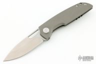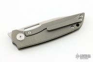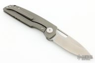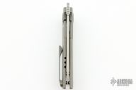 This knife features a fine bead blasted drop point blade with a thumbhole and notched thumbrest. The handle has a bead blasted titanium frame with a matching tip up pocket clip. Includes the original box. Excellent Condition.