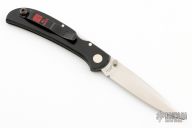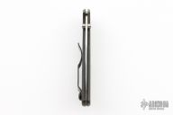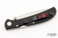 This Hawk Ultralight lock back by Al Mar Knives has a satin finish blade with dual thumb studs. Black linen micarta scales and a black pocket clip. Strong lock up. Has some light scuffs and scratches, otherwise excellent condition.