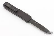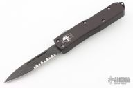This UTX-85 OTF automatic features a S/E DLC black coated partially serrated blade. Black coated stainless steel clip. Dated 04/2009. Has some light scuffs and scratches, otherwise great user condition.