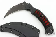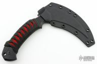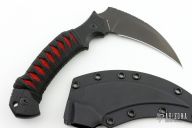 The Grumpy from Bastinelli Creations features a black hawkbill blade with a mortis tang construction.  .121" Blade Stock.  1.43" Blade Depth.  The handle features black micarta scales and custom wrap.  Includes a kydex sheath.  Excellent Condition.