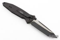 This Socom Elite manual linerlock folder by Microtech Knives has a two-tone black tanto fully serrated blade with notched thumbrest and dual thumbstuds. Has a black aluminum handle with non-slip inlays, tip down black stainless steel clip and hardware. Serial number 10037 and dated 11/2021. Comes with original box and papers. Excellent condition.