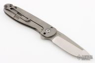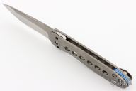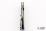 This Tailwhip V2 by Direware Knives features a satin finished blade with notched thumbrest, swedge and a flipper. The handle has a bead blasted titanium frame with hole pattern and a matching tip up clip. Nice detent, lockup and blade seating, rides on bearings. Excellent condition.