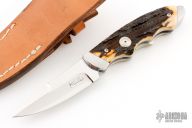 "Kansei Matsuno was born in 1951 in Japan. He found very few knives which met his requirements, so he decided to make knives himself. He used difficult technology, using a file to shape the steel billet. He made knives in this way for two years and then bought a simple belt-sander. Needless to say that productivity and work quality has improved. Soon, his friends began to ask him to design and built knives for them. Then, in 1998, Kansei started manufacturing knifes. In 2001 Kansei visited an American knife show for the first time, and in 2002, the quality of his knives improved and he was admitted for a probationary period in the American Knifemakers Guild. Today Kansei prefer to create frameworks folding knives made of titanium, stainless steel blades are VG-10b, OU-31, CV-134. Lining the handle makes it out of steel G-10, deer antler, pearl and coral. He changes the design of knife depending on customer requirements. Now, Kansei is manufacturing a series of first-class folding knives with different original designs and high quality."
